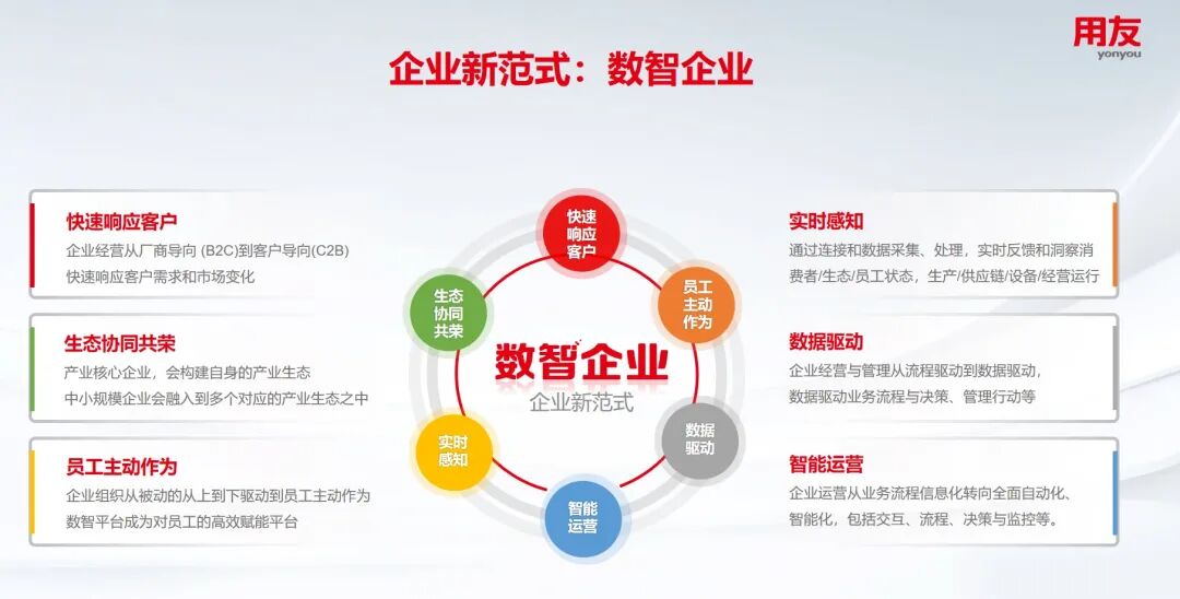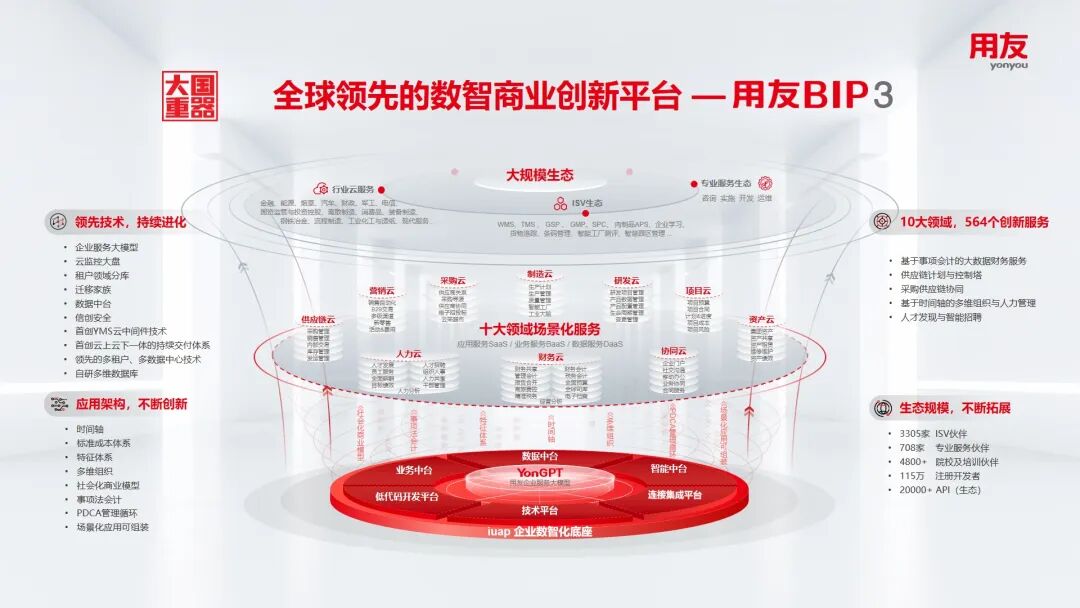 成为数智企业 发展新质生产力 今年两会以来,“新质生产力”成为热词。新质生产力是由技术革命性突破、生产要素创新性配置、产业深度转型升级而催生的先进生产力,通过劳动者、劳动资料、劳动对象及其优化组合的质变实现全要素生产率的提升,其特点是创新、关键在质优,本质是先进生产力。 王文京指出,在发展新质生产力的进程中,基于新一代信息技术以及关键生产要素数据,推进企业数智化转型,加速数智商业创新,是形成新质生产力的必由之路。对于企业而言,数智化是通过应用当代数字与智能技术,进行创新变革,进而重塑企业,赢得新发展的过程。企业要跟上数智时代的进步发展,就要更好地推进数智化转型。 当前,各行各业企业都积极推进数智化转型。作为在业界率先倡导“企业数智化”的厂商,用友一直敏锐洞察企业数智化新发展。王文京表示,企业数智化转型最终目的是为了企业更好地发展,要从两个层级的目标来推进: 通过业务模式的创新、管理方式的变革,以及工作方式的转变,来实现企业业务敏捷、精益管理、全球运营的“企业创新目标”。 在此基础上,通过数智化来开拓市场、创新产品、增长收入、降低成本、提高效率、管控风险、改进体验、提升质量、增强安全和履行社会责任,最终实现企业更高经营绩效、更强竞争优势和更可持续的发展的“企业发展目标”。 王文京分享到,目前越来越多的企业正在加快数智化转型,全球企业的发展正在走向一个新的范式——“数智企业”。成为“数智企业”需要具备6个特性,在业务层面要具备快速响应客户、生态协同共融、员工主动作为的特性,在技术层面要具备实时感知、数据驱动、智能运营的特性。 用友BIP三大核心价值 成就数智企业 企业加速数智化转型,进阶为“数智企业”背后是软件服务厂商和数智技术的支撑。王文京表示,用友专注企业服务领域36载,在3.0发展阶段战略投资、规模研发打造的全新一代产品——用友BIP(用友商业创新平台)目标就是要服务企业的数智化创新发展,赋能和支持企业成功推进数智化,成就数智企业。 王文京表示,围绕企业数智化建设的核心诉求,用友BIP为企业带来“业务敏捷、精益管理、全球运营”三个方面的核心价值,来成就数智企业。 业务敏捷 涉及到企业生产经营的多个方面,包括快速研发、精准营销、高效采购、敏捷供应链、智能制造等多个方面。通过这样一些应用,可以帮助企业实现对客户需求的实时感知,快速去响应市场的变化。同时,整个供应链、产业链协同高效运营。 如飞鹤乳业在用友BIP的支撑下,打造了从采购、生产、仓储、物流到经销商、终端渠道的全链路数智化体系,实现从工厂到终端全局供应链高效协同,婴幼儿奶粉28天新鲜达。又如用友BIP帮助双良硅材料实现人、机、料的实时连接、动态感知、精准协同,实现生产过程智能化、生产数据可视化、业务作业标准化的数智化运营模式,生产计划执行准确率提升50%,现场生产执行效率提升35%,打造新能源光伏产业数智化工厂。 精益管理 指的是企业管理的精细化、高质量、效益化,这是今天所有企业都在推进的一项管理改进工程。用友BIP帮助企业实现人财物项的精益化管理,建立高效协同的组织运行方式,包括通过智能会计帮助企业进行实时、精细、多维的财会管会核算体系,实现对收入、成本、资金等精细化管理。在此基础上实现深度业财融合,基于决策型数据服务实时洞察业务,优化业务,控制风险。此外还包括企业人才智能发现、企业资产实现精化管理等。 如用友BIP服务的厦门航空基于智能节油数据中台,集成航空飞行相关业务系统,采集全量航班飞行数据(包括QAR),对飞行时间、 机型、航段等多各维度来挖掘耗油因素和变化规律,从而发现节油优化空间,通过合理加油年度节省油费达1640万元。 全球运营 涉及到全球的资源配置,比如说全球采购、跨境电商、全球营销、全球司库等,还涉及海外运营的合规的问题。对于全球运营,用友BIP提供了一体化的数智化全球运营解决方案,以支持企业在全球范围内的合规性、隐私保护、数据安全、以及本地化适应。 如用友助力卧龙电驱建设国内外一体化数智化采购平台,支持国内、国外采购业务在统一平台上合规运行,通过采购寻源管理实现全球寻源,寻源过程透明化,年降本额在10%以上。 加速产品升级 实现创新引领 “持续创新”是用友核心价值观的重要构成,已深深写入用友的基因。自创立以来,用友先后通过领先的财务软件、ERP(企业管理软件),服务了中国企业的会计电算化、企业信息化,并先后成为中国第一的财务软件提供商和亚太最大、全球前10的ERP软件提供商。当前用友处于3.0时期,通过持续构建全新一代的产品用友BIP,成就数智企业的进程中。 用友BIP持续迭代、不断进化,在平台技术与应用架构、领域与行业应用、生态体系三个层面,实现全面突破。在今年2月,用友BIP 3 R5发布,在数据能力、智能化、全球化、用户体验、应用创新、安全等6个方面进一步发展。 如在数据服务方面,用友BIP 3 R5在数据采集、数据营运、数据服务等能力上进一步提升,帮助企业更好地实现数据驱动。如在智能分析方面,用友ChatBI使用大模型技术,实现自然语言对话即分析,开创便捷、灵活、智能的数据分析新模式,让数据分析走向更便捷、