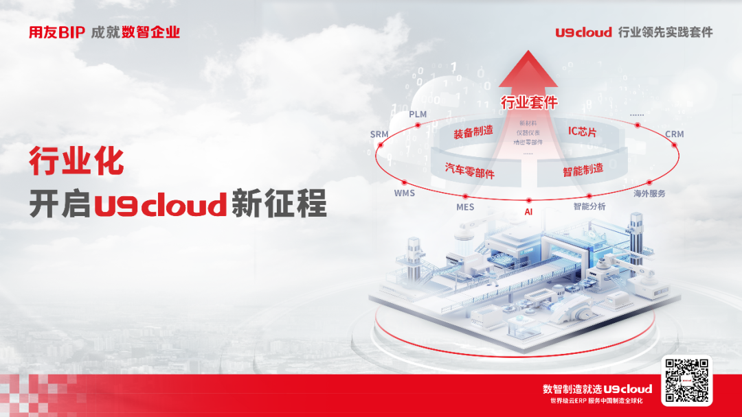 数智化进行到深水区,U9 cloud再次以硬核的产品能力让制造企业有理由相信: U9 cloud,尤其擅长解决细分行业制造业的疑难杂症,敢于触碰“难啃的骨头”。 首先,产品采购的门槛降低了。以往,当客户面对“极其专业与成熟”的U9 cloud时,需要同样面对一张功能众多的专业产品模块列表,很有可能会本着“不可漏掉一个”的保守心态多选,或不小心真的漏选。如今,行业套件悉数囊括了同类客户的绝大部分核心需求,客户可以直接复用已封装打包的领先实践,再也不需要经历深一脚浅一脚的“考试”过程。 好比去餐厅点菜,倘若一份菜单上有几百道菜,的确不知从何下手,一旦聚焦到相对比较固定的场景,如婚宴、商务宴请、生日聚会等,方案很快明晰,套餐成本也得以降低,并且所有菜品随着整体菜单的更新同步迭代,客户体验没有丝毫影响。 第二,实施交付的门槛降低了。U9 cloud实施和解决方案团队,由经验丰富的资深专家组成,他们是高效交付的智力保障。行业化实施工具汲取专家抽象出来可复制的行业经验,具有高度的行业适配性和快速的部署能力,客户可以在较短时间内体验到降本增效的成效,加速数智化转型。 第三,规则及流程的门槛也降低了。过往项目中,很多企业因为基础工作没做好,造成上线效果大打折扣。其实,项目成功上线的背后,基础规则的优化和业务流程的优化,乃至管理制度的优化和指标体系的优化都显得尤为重要。行业套件提供的“轻咨询”服务,通过时间和费用上的“轻”,帮助客户短时间内高效理清思路,提供管理类建议,确保交付价值。 同样亮眼的是,U9 cloud紧密结合企业实际需求的AI+智能应用场景,如工艺智能、物料清单和工艺路线的自动解析与生成等等,为客户提供了更多面向未来的选项。 行业化是数智化深耕的必由之路。U9 cloud不负众望,用再一次的深度“聚焦”,让客户精准找到适配产品,简单易用且性价比高,有效控制了数智化转型的总成本和风险。 “作为制造企业云ERP的引领者,U9 cloud与AI+产品整合,与公有云服务YonBIP超级版和YonSuite整合,与生态产品整合,一竿子插到底,构建出支持中大型复杂制造业全球化的产品能力。”用友网络副总裁兼EBG市场运营部总经理傅毅分享了U9 cloud全新的战略目标。