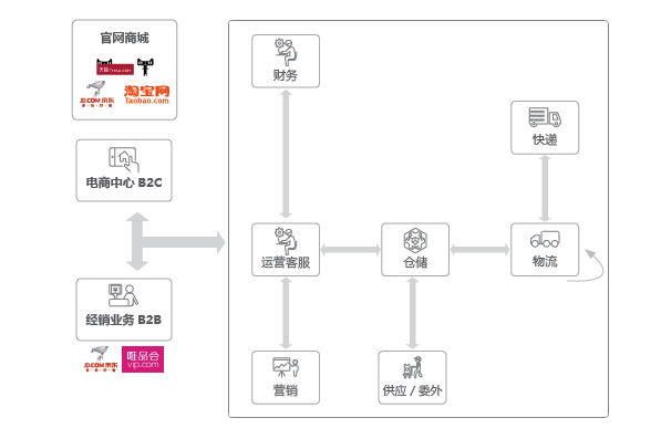• 标准化B2B、B2C业务流程,整合订单处理平台,快捷零差错;