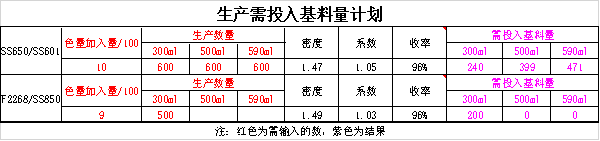 企业的产品按支进行销售,支装分别有300ML\500ML\590ML,而生产实际是按基料投料量KG进行生产排产,因设备容量分250KG,400KG,800KG, 如果生产订单无法直观快速体现投料量,则生产安排人员无法进行排产安排,例如当收到订单3000支时无法直接知道投料量是多少,安排什么设备合适,如何做到最经济批量生产。通过开发自动计算出基料的投料量,便于快速进行生产排产安排。
