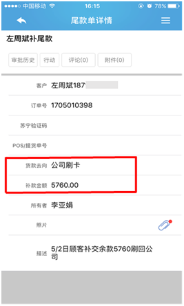 移动销售补收尾款