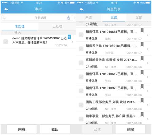 • 移动应用:移动营销、移动服务、移动审批