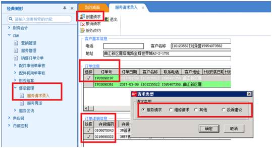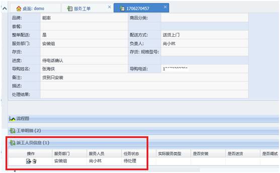 客户来电及销售订单审核后形成客户服务请求,第一时间将请求信息派发给服务部门,服务部门及时安排线上派工。