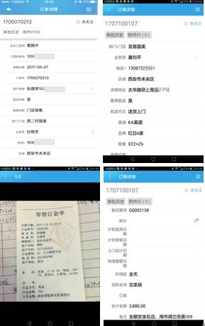 300人导购实时录入成交的销售订单,优化了过去导购报单给客服再由客服登陆系统录单的繁琐流程。订单派工后可查看工程师电话,建立内部沟通体系。详细记录客单详细信息及卖场销售小票影像资料。