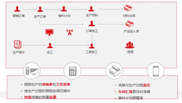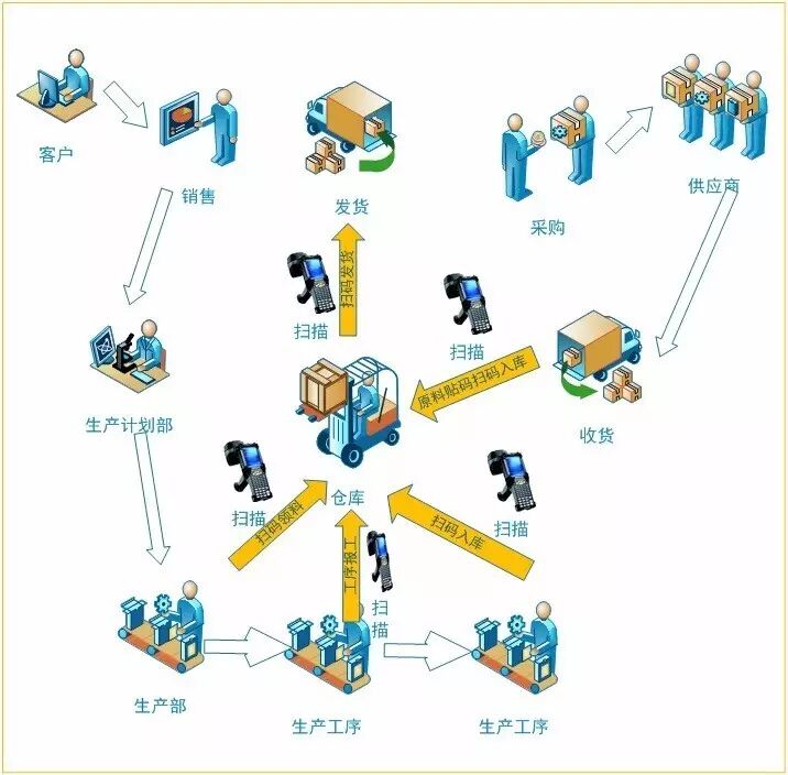 条码小科普 条码是由一组按一定编码规则排列的条,空符号,用以表示一定的字符,数字及符号组成的信息。 条码卡分为一维码和二维码两种。一维码比较常用,如日常商品外包装上的条码就是一维码。它的信息存储量小,仅能存储一个代号,使用时通过这个代号调取计算机网络中的数据。二维码是近几年发展起来的,它能在有限的空间内存储更多的信息,包括文字、图象、指纹、签名等,并可脱离计算机使用。 一维码 作用: 可以识别商品的基本信息,例如商品名称、价格等,但并不能提供商品更详细的信息,要调用更多的信息,需要电脑数据库的进一步配合。 优缺点分析: 技术成熟、使用广泛;信息量少、只支持英文或数字,设备成本低廉。 二维码 作用: 不但具别识别功能,而且可显示更详细的商品内容。例如衣服,不但可以显示衣服名称和价格,还可以显示采用的是什么材料,每种材料占的百分比,衣服尺寸大小,适合身高多少的人穿着,以及一些洗涤注意事项等,无需电脑数据库的配合,简单方便。 优缺点分析: 点阵图形,信息密度高,数据量大,具备纠错能力;生成后不可更改,安全性高;支持多种文字,包括英文、中文、数字等。 一维码、二维码、RFID:对比分析示意图 实现万物互联,为什么是条码? 条码常见应用领域: Ø 零售:快速结账。 Ø 仓储:准确管理、快速出入库、盘点。 Ø 生产过程:快速处理、防错。 Ø 消费品:防伪、防窜货。 Ø 药品:药监码跟踪管理、快速出入库、盘点。 制造企业生产存在诸多实际问题: Ø 作业效率低:靠手工在办公室PC把业务数据录入ERP系统,不能移动、不实时、操作不方便。 Ø 库存不准确:事后手工录入ERP单据繁琐易错、数据延迟,导致ERP库存数据不准确、不及时。 Ø 出入库常发生错漏:出入库时靠人工核对物品、数量容易错漏,导致发错料、收错货,影响生产和服务质量。 Ø 产线仓缺料延误:生产现场物料消耗、车间库存等信息未能及时反馈到发料员,导致发料不及时,影响生产。 Ø 决策滞后:由于生产过程中的大量数据无法及时采集,导致决策严重滞后。 Ø 生产过程无法跟踪:由于各个工序的数据无法准确及时的采集,导致整个生产过程无法追踪。 Ø 生产领料不准确:面对机械化多工序复杂生产,单靠人工采集数据,已经无法保证生产领料的及时性和准确性。 Ø 成品下线后跟踪困难:单纯靠手工采集生产及完工下线数据,很难做到产品的质量追踪,增加了企业生产成本。 企业信息化建设需要条码移动管理 Ø 从企业内部数据采集上,企业需要快速进行数据采集,提高数据有效性和及时性。 Ø 从企业管理要求上,数据采集更加准确,确保数据的一致性、准确性和共享性。 Ø 在敏捷高效的供应链运营体系中,企业在收发货环节更高效的进行收货、发货、降低库存。 Ø 在企业内部,岗位之间的数据传递要求真实、统一、沟通顺畅。 Ø 在企业外部,对购销的产品需要进行质量追溯。 条码可以应用在企业ERP运营中的各个环节: 场景化的NC条码应用解决方案 条码管理结构示意图 NC条码管理支持两类,一类是物料码,一类是单据码。 条码规则定义:企业建模平台-条码管理 条码打印功能:供应链-条码管理 条码扫一扫,轻松实现在线实时采集 连接NC系统,在库存出入口库单维护界面,或者在生产制造条码工作台直接扫描条码。NC自动解析条码,并自动累加数量,增加分录。比如:1个条码代表1个单位的物料,扫描5个标签则入库数量自动累加为5。 在出入库时,如果扫描条码代表的物料没有在分录中,则NC自动添加分录,此时也意味着入库物料可能存在错误。在条码工作台,如果扫描条码代表的物料没有在分录中,则直接解析失败,避免错误。出入库扫描条码界面: 条码工作台工作界面: NC条码管理目前支持的应用场景: Ø 流程/离散生产订单报工 Ø 流程投放计划报工 Ø 派工单工序报工 Ø 流程/离散工序计划工序报告 Ø 备料计划生产领料 NC条码管理应用实践 典型客户需求-创美工艺 1、 应用了单据条码和工序条码:打印生产准备单,带有条码信息,按区域剪切派相关责任人去现场执行,执行过程信息在纸质上记录,后扫描条码,参照纸质信息录入到信息系统。 2、 离线采集、无线采集 (1)应用场景: Ø 仓储、车间现场的条码扫描应用。 Ø 利用无线网络及通信技术,为条码设备提供管理系统的数据接口,完成数据的双向传输。实现条码设备上数据的实时查询和现场数据采集的实时校验、传递。 Ø 客户实时连接NC数据库,下载所需单据和档案,然后离线进行扫描,扫描后联网再进行数据回传。 (2)应用特点:工作终端不依赖于终端网络环境,可以独立完成扫码工作,有无环境都可完成仓储和车间现场扫描工作。 生产车间条码解决方案图示: