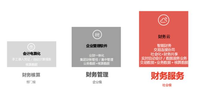 随着科技进步与商业创新,企业财务信息化也从1.0时代的部门级应用的会计电算化,发展到2.0时代的企业级应用的财务管理与集团管控,进而发展到现在3.0时代的的社会级应用的财务云,财务的职能也从财务核算发展到财务管理进而发展到财务服务。 在财务云服务时代,以人工智能为代表的新技术将使的智能财务无处不在,同时打破企业边界强调社会化交易的连接协同,财务共享将进一步加强并发展到社会化共享,财务数据是自动实时产生,财务的数据服务职能将成为重点。 技术变革与商业创新两个轮子将使企业的财务也发生巨大变革,以云计算、大数据、人工智能、移动互联网等技术为核心的技术变革,以及社会化商业、数字驱动实时企业、交易平台化、票据/合约/支付结算电子化、组织灵动化、管理智能化等商业创新模式,给财务带来巨大影响。企业全员及产业链伙伴的财务应用、财务注重与交易平台连接和产业链协同共享、交易级明细数据的实时智能记账、实时财务分析与智能财务预测决策等,这些变革,将使得财务的职能从核算职能到服务职能转变,从价值记录型财务向价值创造性财务转变。 用友财务云能为这些转变提供哪些服务? 用友财务云运用最新的云计算、大数据、人工智能等技术 基于社会化商业这一新的商业范式 为企业提供以智能报账、智能核算、智能共享为核心的财务服务 帮助企业建立起具有连接、融合、共享、智能新特性的财务云平台,引领企业财务转型,创造财务新价值 目前,用友财务云V1.0版本已正式上市,此次发布包括用友财务云核心服务---智能核算服务及智能报账服务。 智能核算服务 致力于为企业提供专业化和智能化的云核算服务。融合业务云实现业财一体化,提供自动化实时化的做账、记账、实时账表、财务分析、财务桌面服务,内嵌财务机器人、智能助手等智能应用,实现财务自动化智能化,提高会计处理效率,释放财务生产力至管理会计和战略会计,引领企业财务转型,让财务更智能。 智能报账服务_友报账 致力于为企业提供专业化的报账服务和连接服务,创造企业财务新价值。作为企业财务数据采集终端,面向企业全员应用,覆盖企业的全角色应用,与企业信息系统无缝集成,实现混合云部署,安全、高效;端到端的流程化服务,打通企业从交易、数据抓取、报账、审批、核算、报告所有环节,实现数据不落地,全线上应用,全程管控。 智能报账服务与智能核算服务作为用友财务云核心服务,运用了人工智能的多项最新技术,例如图像识别技术、语音识别技术、自然语言处理技术、语义解析技术、规则与流程引擎技术、机器深度学习技术等人工智能技术,同时两类服务内部深度融合,共同为企业打造智能财务全方位全场景的应用,帮助企业打造价值创造型财务。 两大服务的结合实现了“交易核算一体化融合” 智能报账服务作为数据采集终端、用友财务云的总入口,面向全员提供全线上应用。全流程覆盖申请、交易、报告各环节,发生的出行、商旅、商宴、集采、通讯、快递物流等交易级数据可实时进入智能核算服务系统中,数据自动生成会计凭证,智能实时财务核算、监管报送自动完成。 智能化应用场景举例 拍照上传︱智能记账 员工发生一笔日常费用支出时,借助用友财务云智能报账服务的扫一扫功能、OCR技术,即可快速完成【发票查验】---【生成消费记录】---【一键自动报账】一整套智能化处理;与此同时,智能报账服务与智能核算服务无缝对接,报账服务中的交易级数据实时进入核算服务中,通过智能会计平台自动生成财务凭证、完成记账。 “交易核算一体化融合”是用友财务云的一大产品创新和技术优势。后续的产品发展中,我们也将继续秉着“智能财务,服务创变”的愿景,不断丰富和优化产品和服务,助力企业财务转型与创变。
